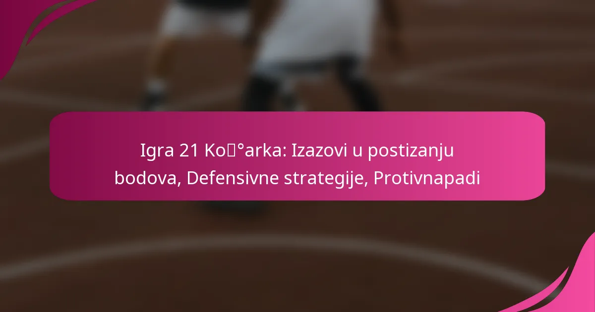 Košarkaška igra 21 donosi jedinstvene izazove u postizanju bodova koji zahtijevaju od igrača prilagodbu svojih strategija kako bi maksimizirali bodove dok se pridržavaju specifičnih pravila. Učinkovite defenzivne taktike su ključne za ometanje ofenzivnog toka protivnika, a igrači moraju biti vješti u prepoznavanju i suprotstavljanju tim strategijama kako bi poboljšali svoje ukupne performanse. Razumijevanje tehnika postizanja bodova i defenzivnih formacija ključno je za uspjeh u ovoj dinamičnoj igri.