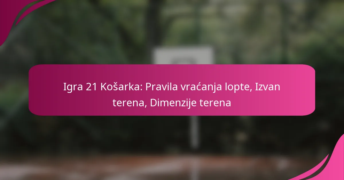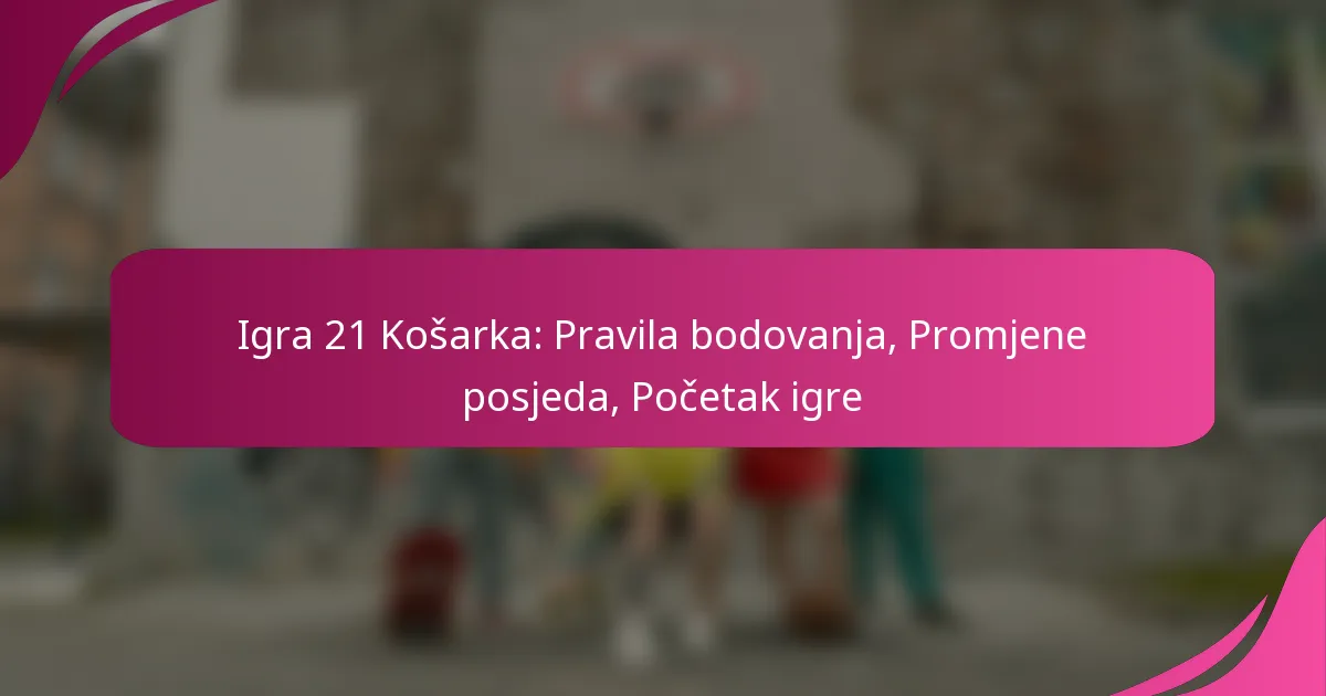 Igra 21 Košarka je jedinstvena varijanta tradicionalne košarke u kojoj igrači osvajaju bodove na temelju vrste izvedenih šuteva, s ciljem da dođu do ukupno 21 boda kako bi pobijedili. Promjene posjeda regulirane su specifičnim pravilima koja se odnose na izgubljene lopte i prekršaje, što je ključno za održavanje toka igre. Igra počinje dogovorom igrača o pravilima i određivanjem prvog strijelca putem skoka ili bacanja novčića, postavljajući ton za utakmicu.