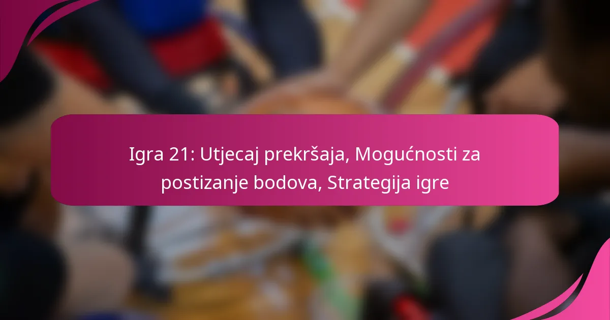 Vrste prekršaja počinjenih tijekom Utakmice 21 mogu se kategorizirati u nekoliko ključnih tipova. Uobičajene vrste prekršaja uključuju osobne prekršaje, tehničke prekršaje i nesportsko ponašanje. Svaka vrsta nosi različite posljedice za ponašanje igrača i strategiju momčadi.