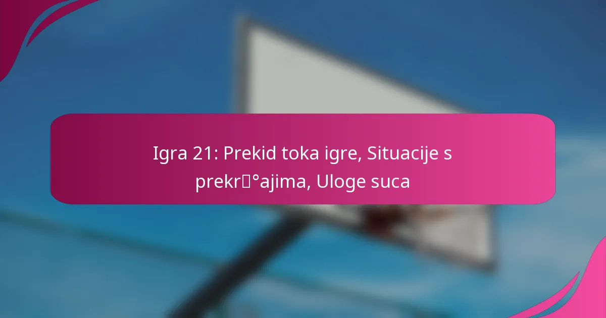 Prekid igre ključni su trenuci u sportu koji mogu promijeniti momentum i strategiju utakmice. Ove smetnje često proizlaze iz prekršaja, ozljeda ili službenih pregleda, a svaka nosi svoje posljedice za igru. Sudci su ključni u ovom kontekstu, jer provode pravila i donose važne odluke kako bi održali pravednost i integritet igre.